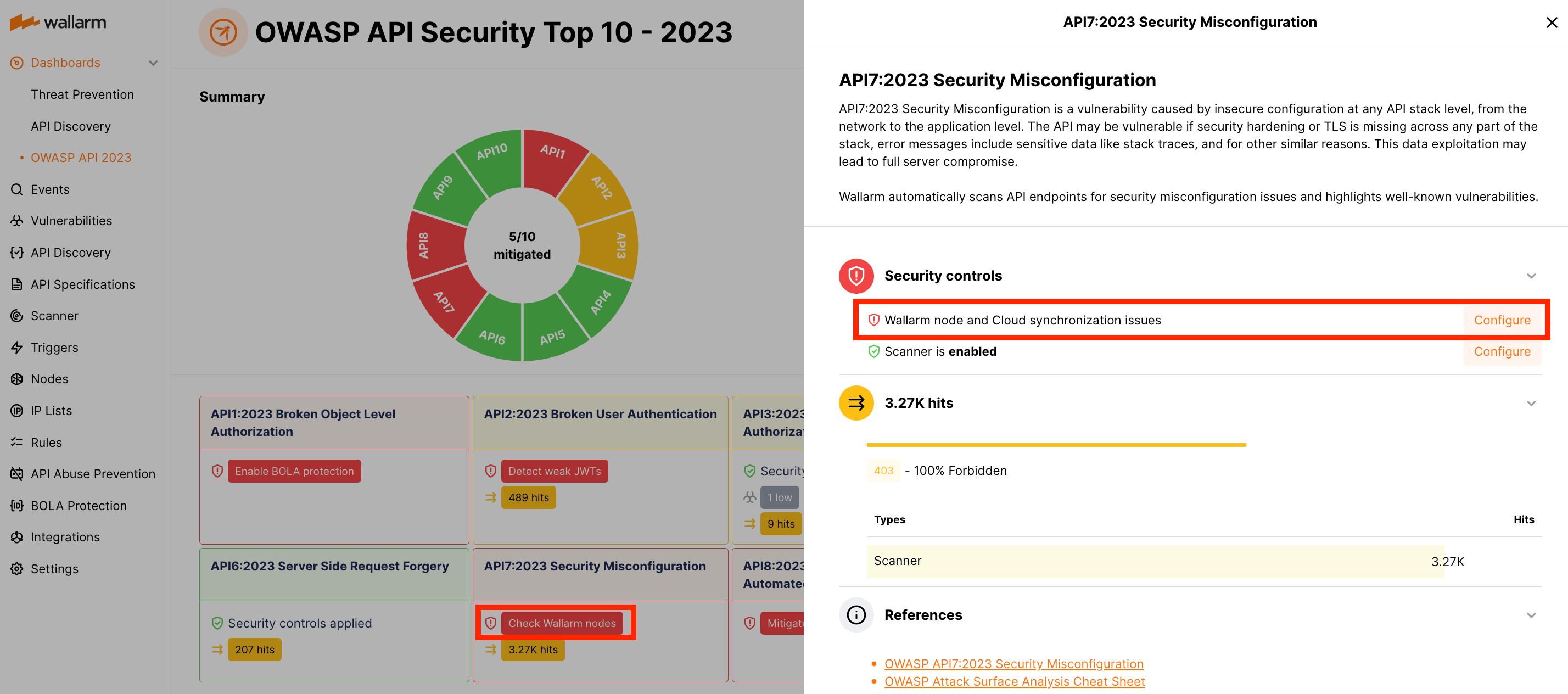 Addressing Wallarm node issues alerted by the OWASP dashboard¶