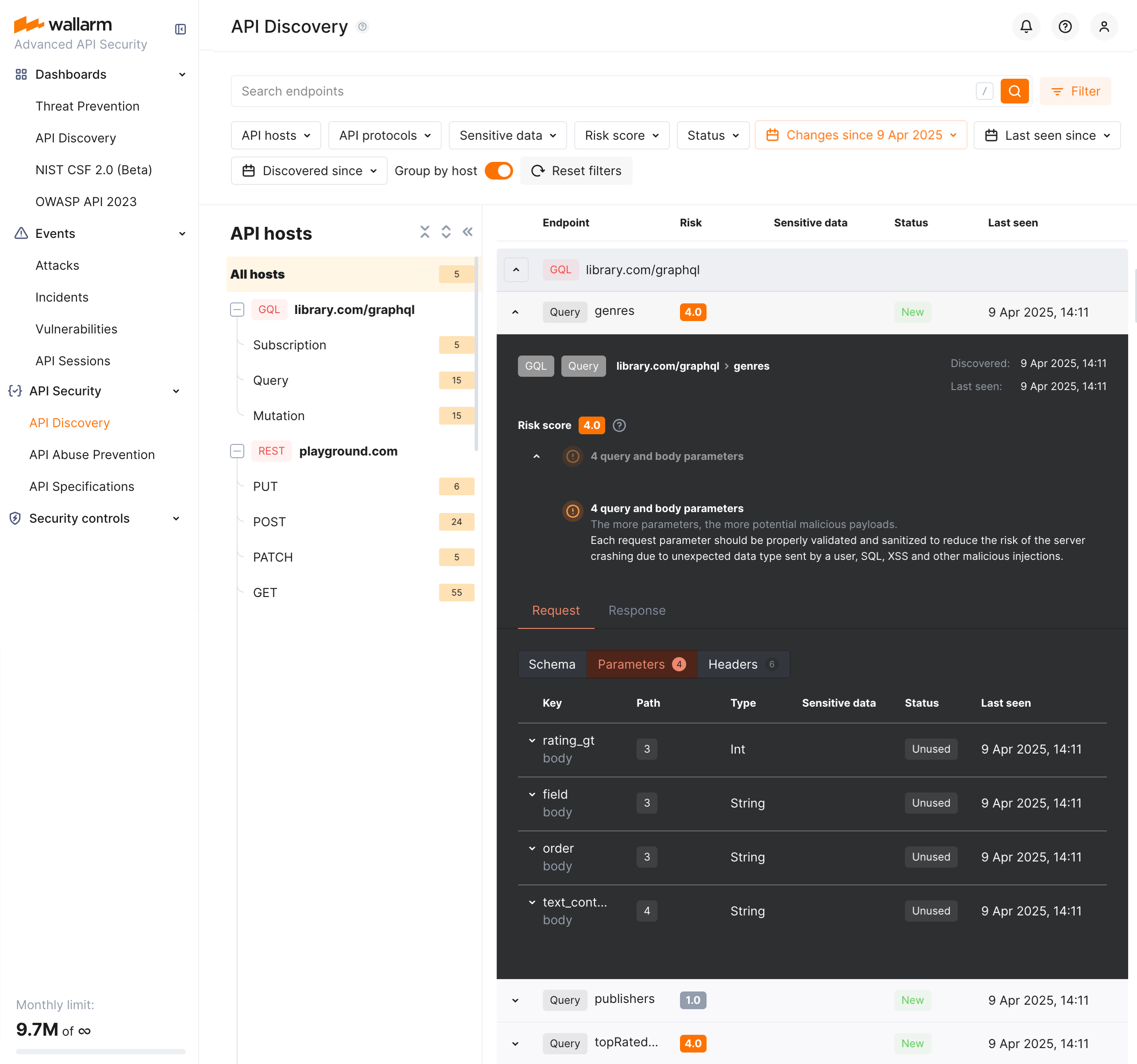 Wallarm's New API Discovery is now multi-protocol: the REST protocol is extended with the support of GraphQL and SOAP. Also, improved user interface and performance make work with the API Discovery more comfortable and effective than before.