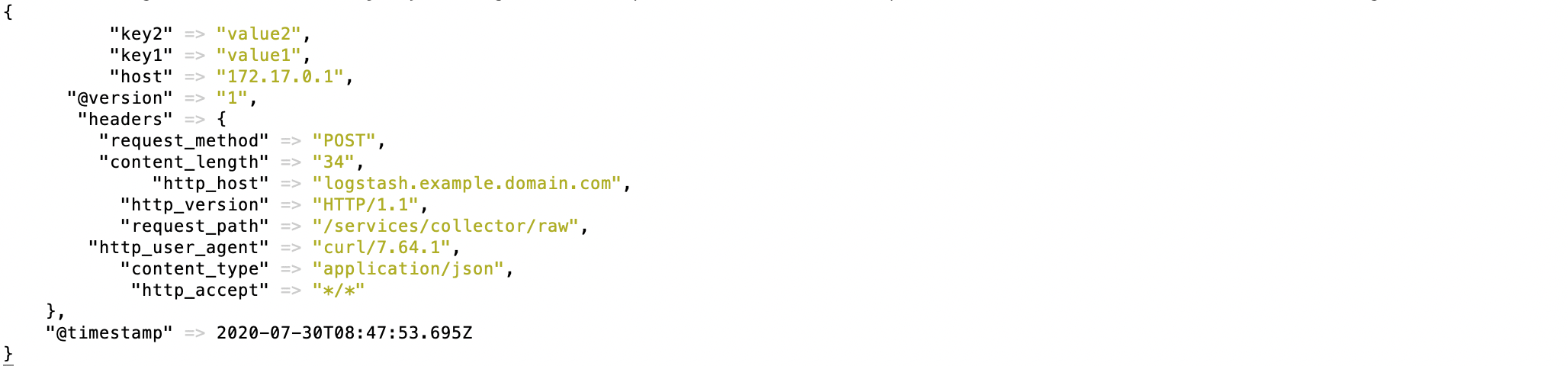 via POST requests. To authorize requests, the HTTPS Event Collector token is used - Logstash logs are additionally printed on the command line (15th code line). The setting is used to verify that events are logged via Logstash