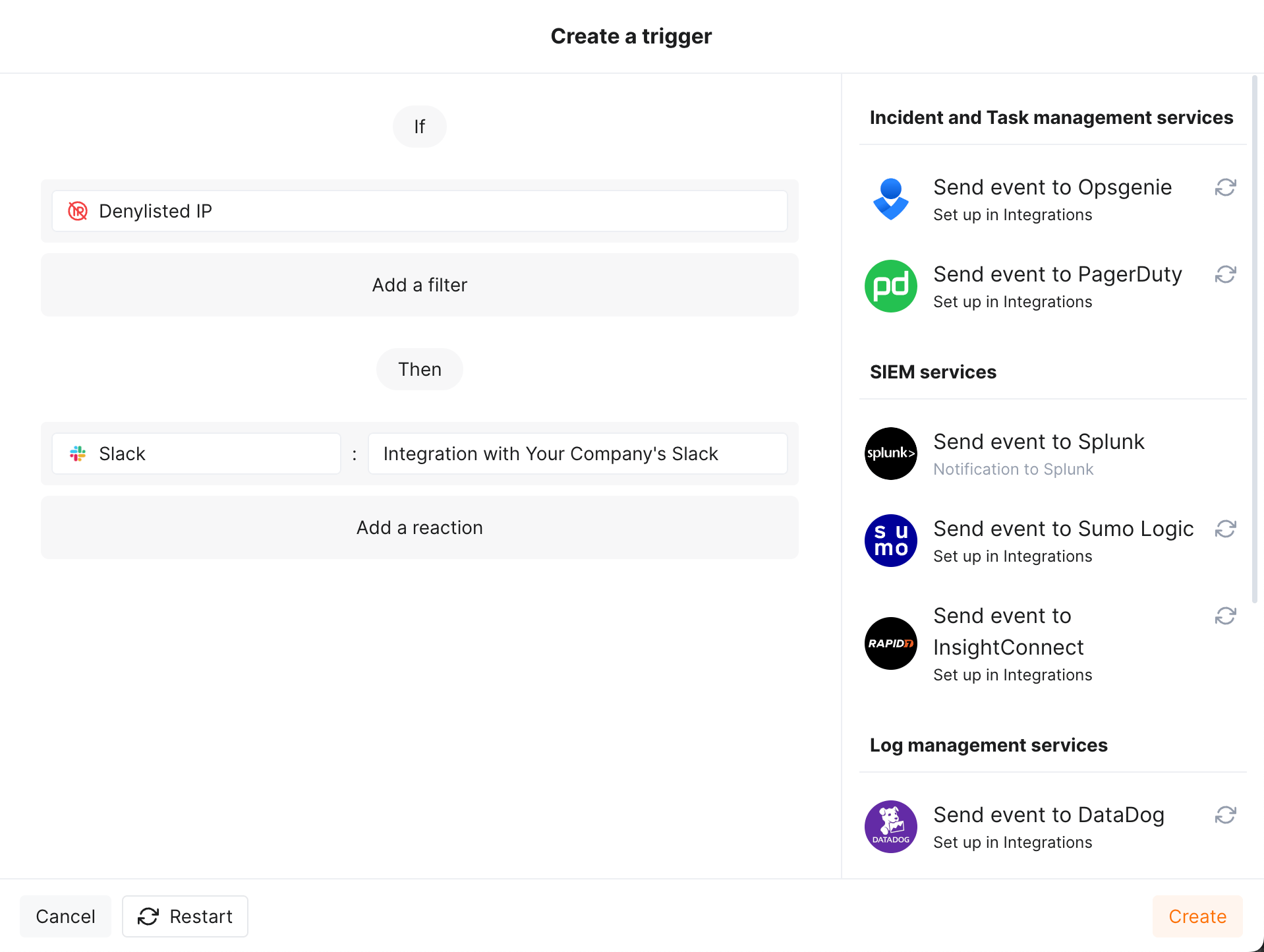 Example: notification to Webhook URL if IP address is added to the denylist¶